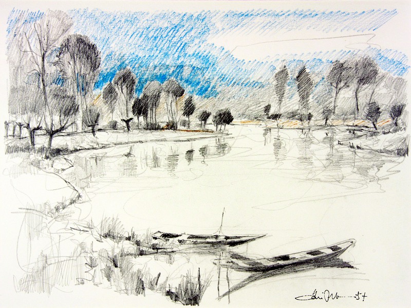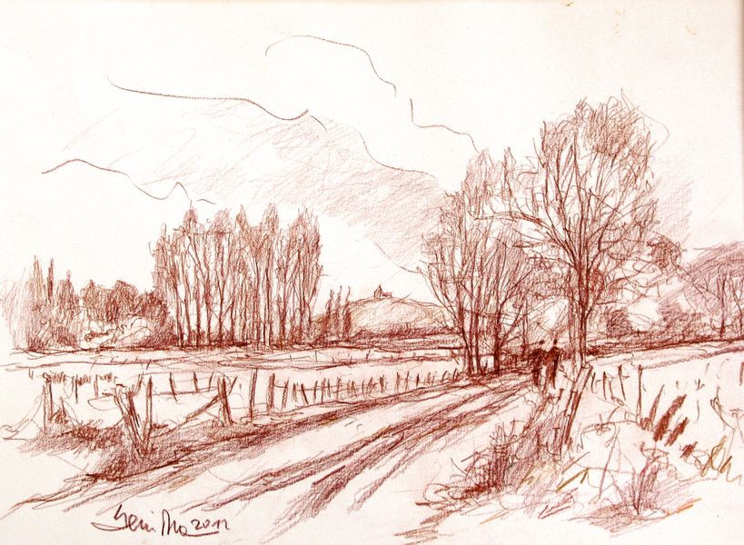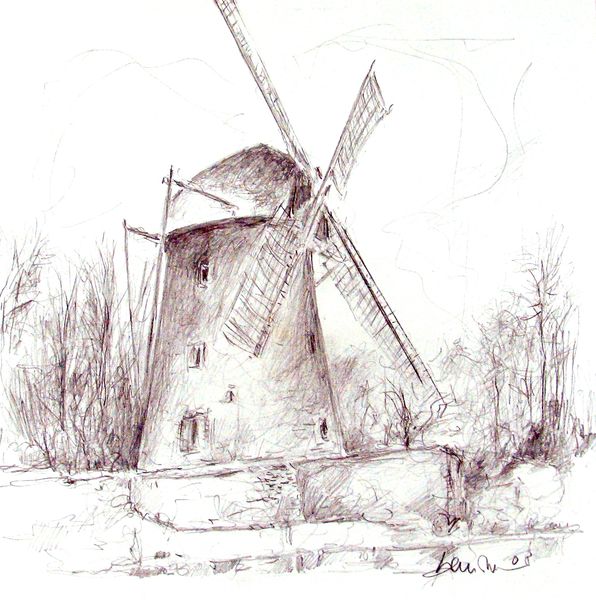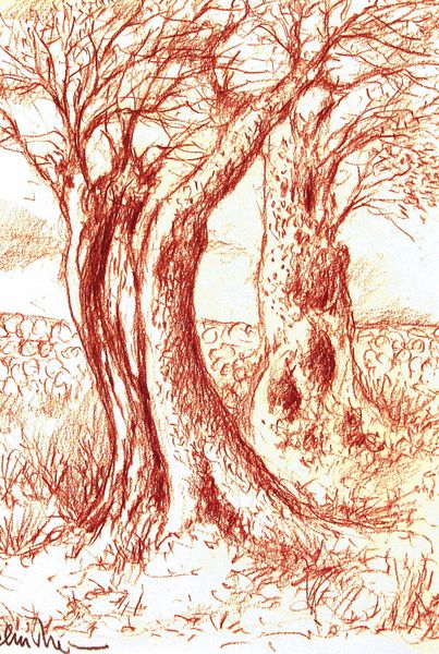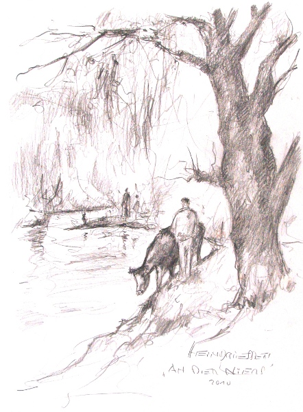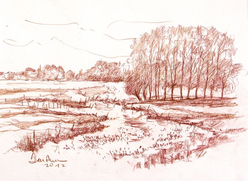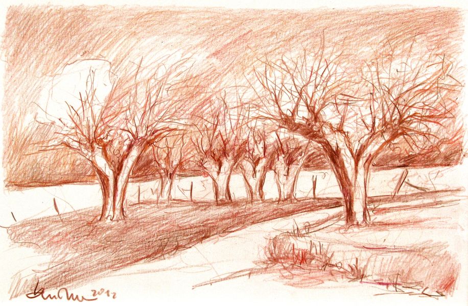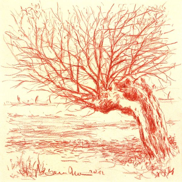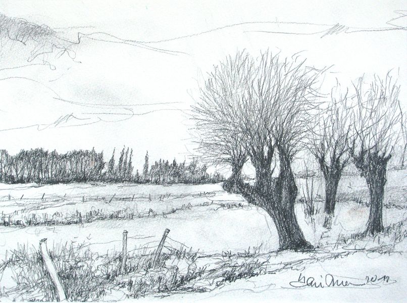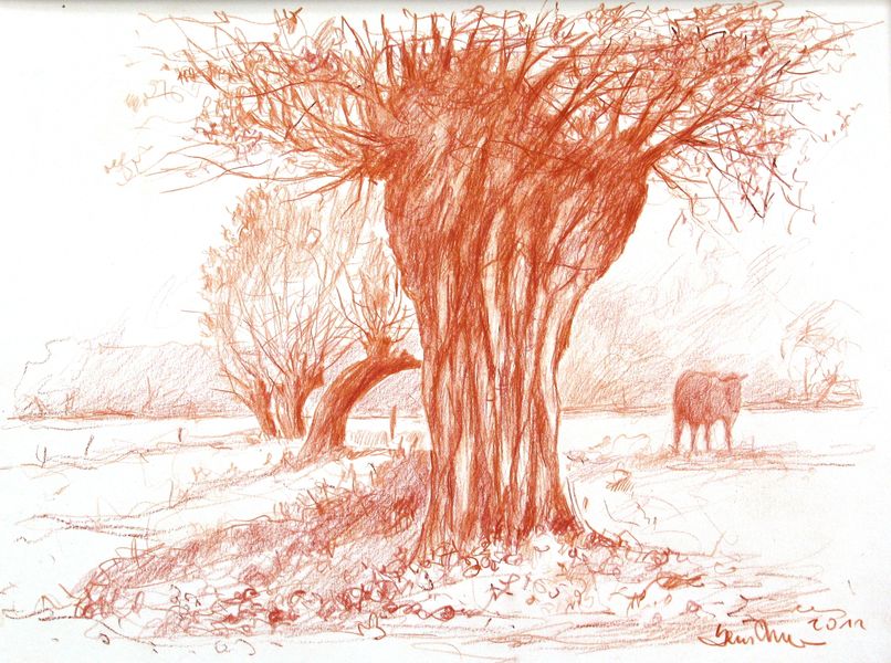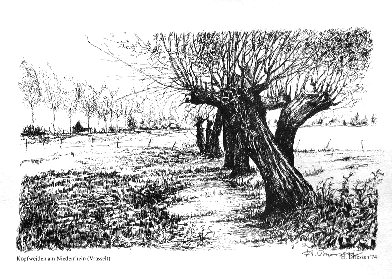 Niederrhein, Kopfweide, Zeichnung, Driessen