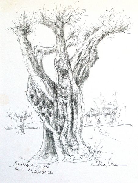 Niederrhein, Kopfweide, Federzeichnung. Driessen