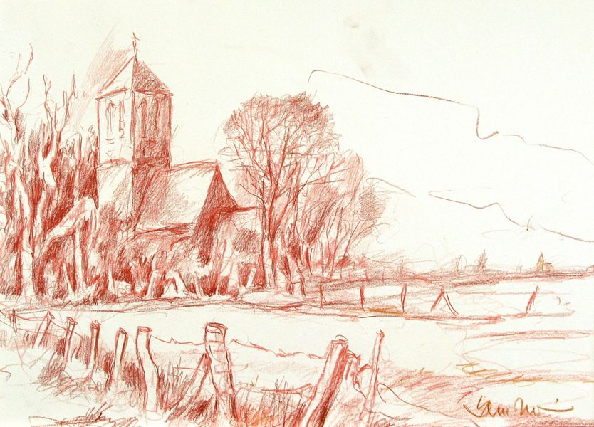 Elten, Niederrhein, Kate, Zeichnung, Hein Driessen