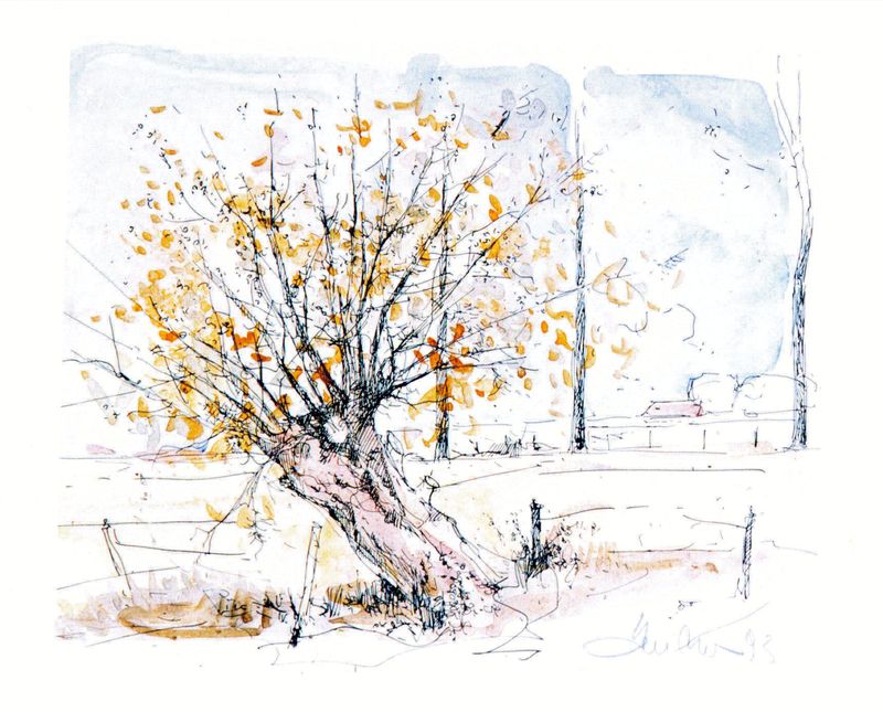 Ölbaum und Kopfweide in der europäischen Landschaft