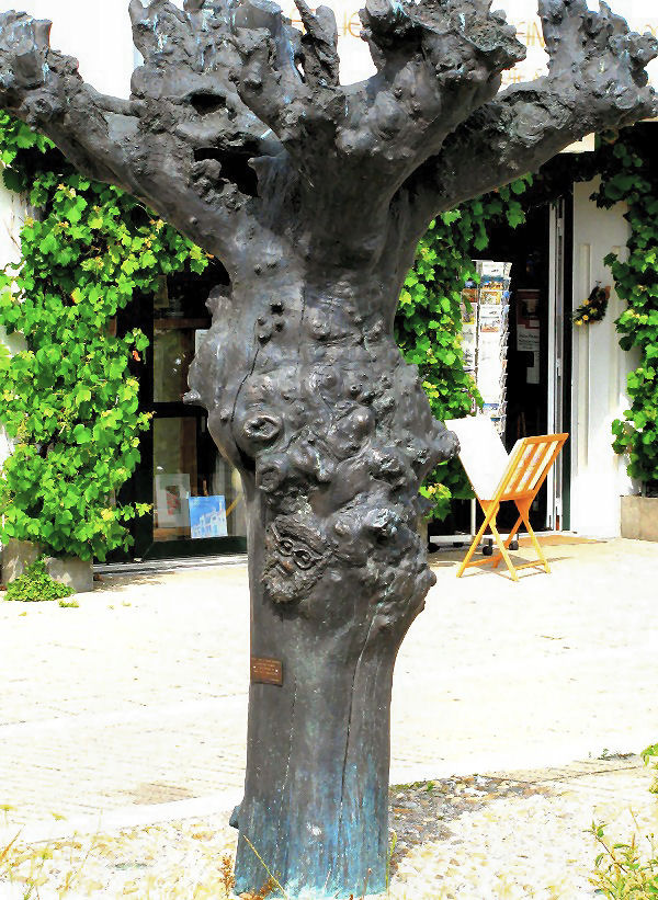 Gegenüber vom Atelier steht die in Bronze gegossene Hanns Dieter Hüch-Weide [/], die der Künstler zusammen mit vielen Bewunderern dem wohl berühmtesten Kabarettisten vom Niederrhein gewidmet und gestiftet hat. Hüsch lebte von 1925 bis 2005 am Niederrhein und zwischen ihm und dem Maler Hein Driessen bestand eine innige Freundschaft. Die Hüsch-Weide vor dem Atelier symbolisiert die Verbundenheit der beiden Künstler und ist gleichzeitig die “Niederrheinische Glücks-Station”. Neben der Weide befindet sich eine Marmortafel mit dem bekannten Hüsch-Gedicht